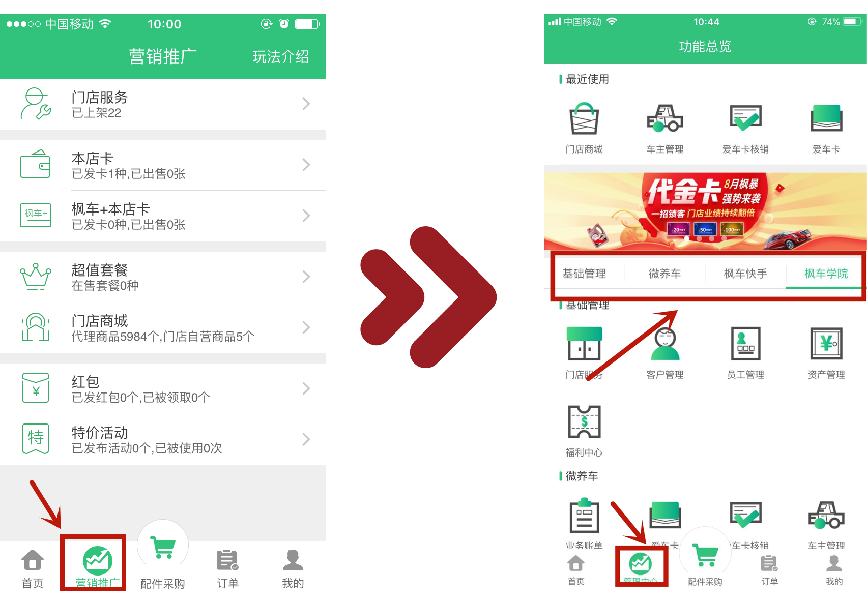 ?升級一:營(yíng)銷(xiāo)推廣升級為管理中心 ??經(jīng)營(yíng)管理更方便