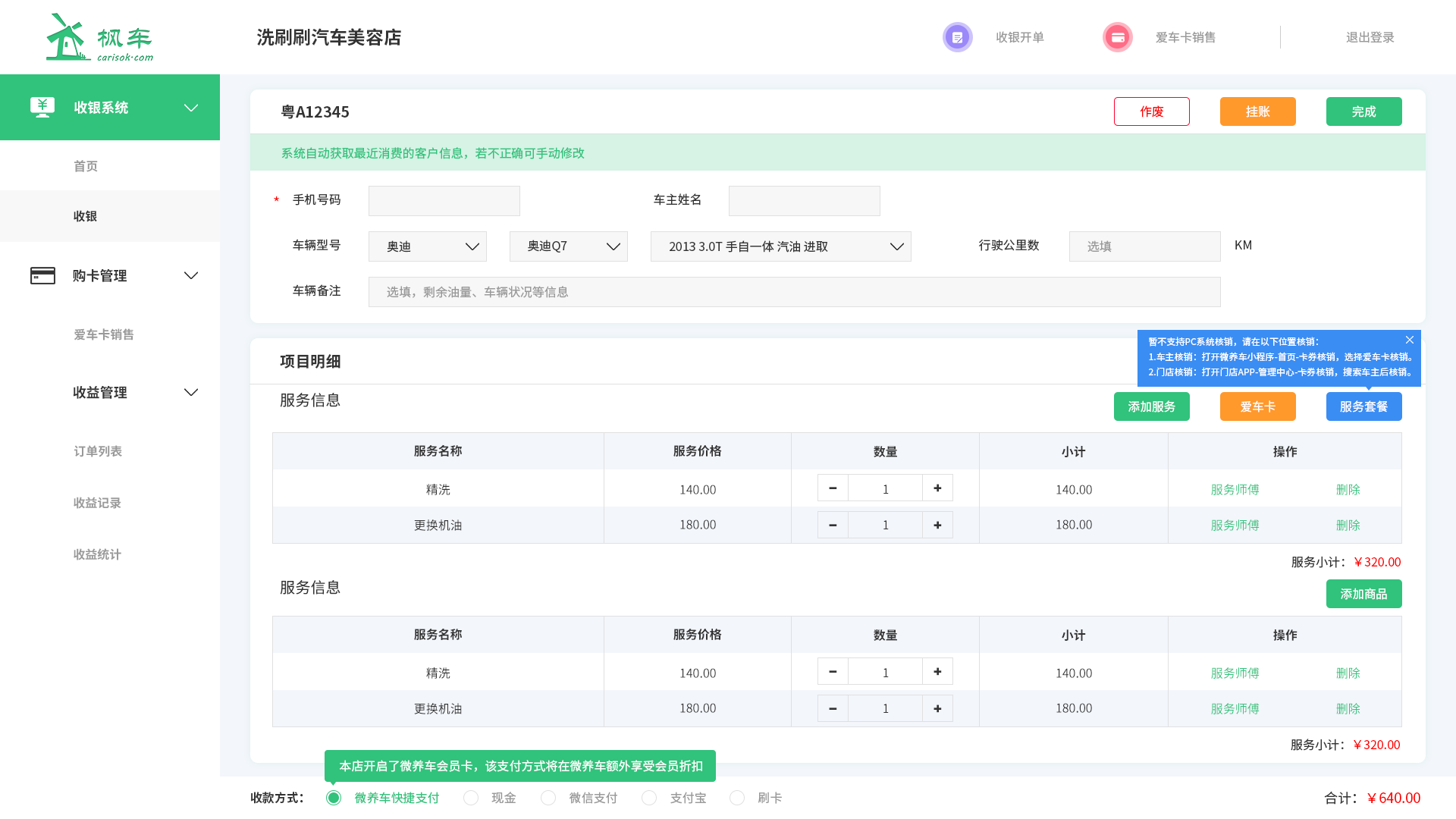 現在楓車(chē)推出微養車(chē)門(mén)店專(zhuān)屬收銀系統!