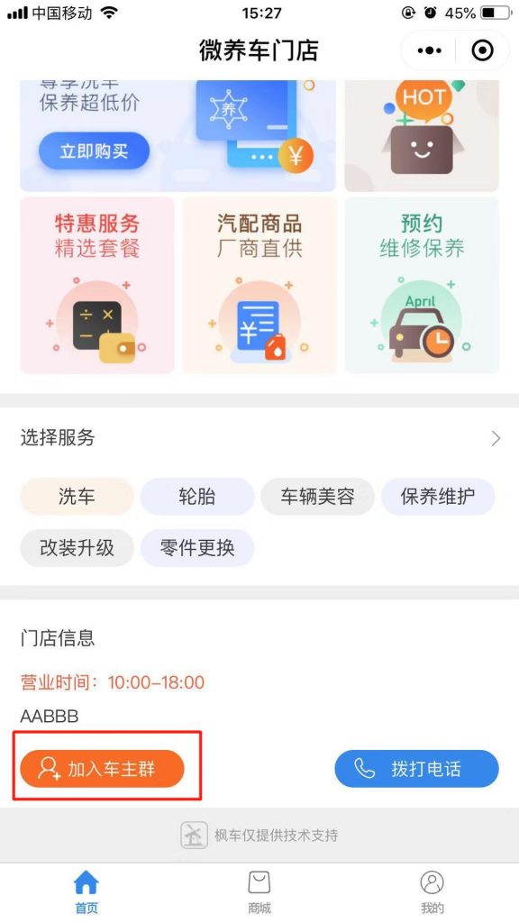 車(chē)主在微養車(chē)小程序加入門(mén)店車(chē)主群操作