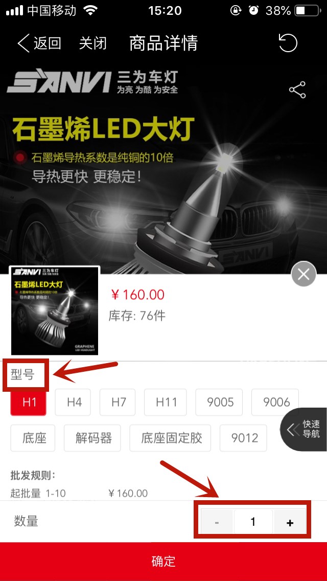 6、選擇型號、數量,再點(diǎn)擊“確定”