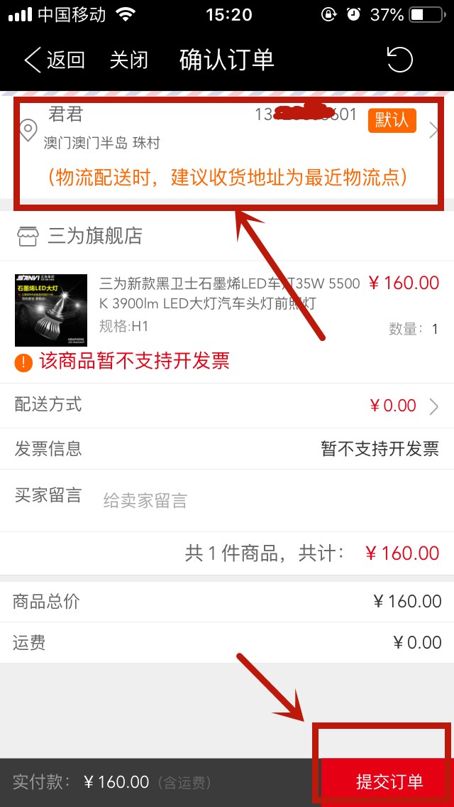 7、填寫(xiě)物流信息,提交訂單