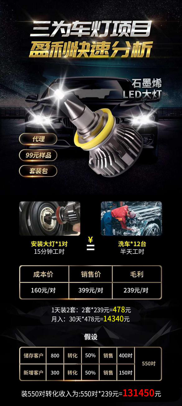 門(mén)店直接代理:直接代理三為led大燈,微養車(chē)小程序直接營(yíng)銷(xiāo)車(chē)主提前購買(mǎi)。?