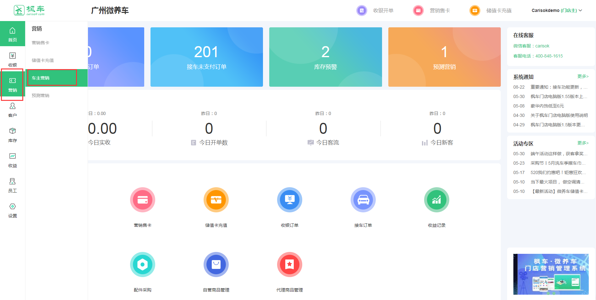 一、打開(kāi)PC客戶(hù)端選擇營(yíng)銷(xiāo)按鈕進(jìn)入車(chē)主營(yíng)銷(xiāo)