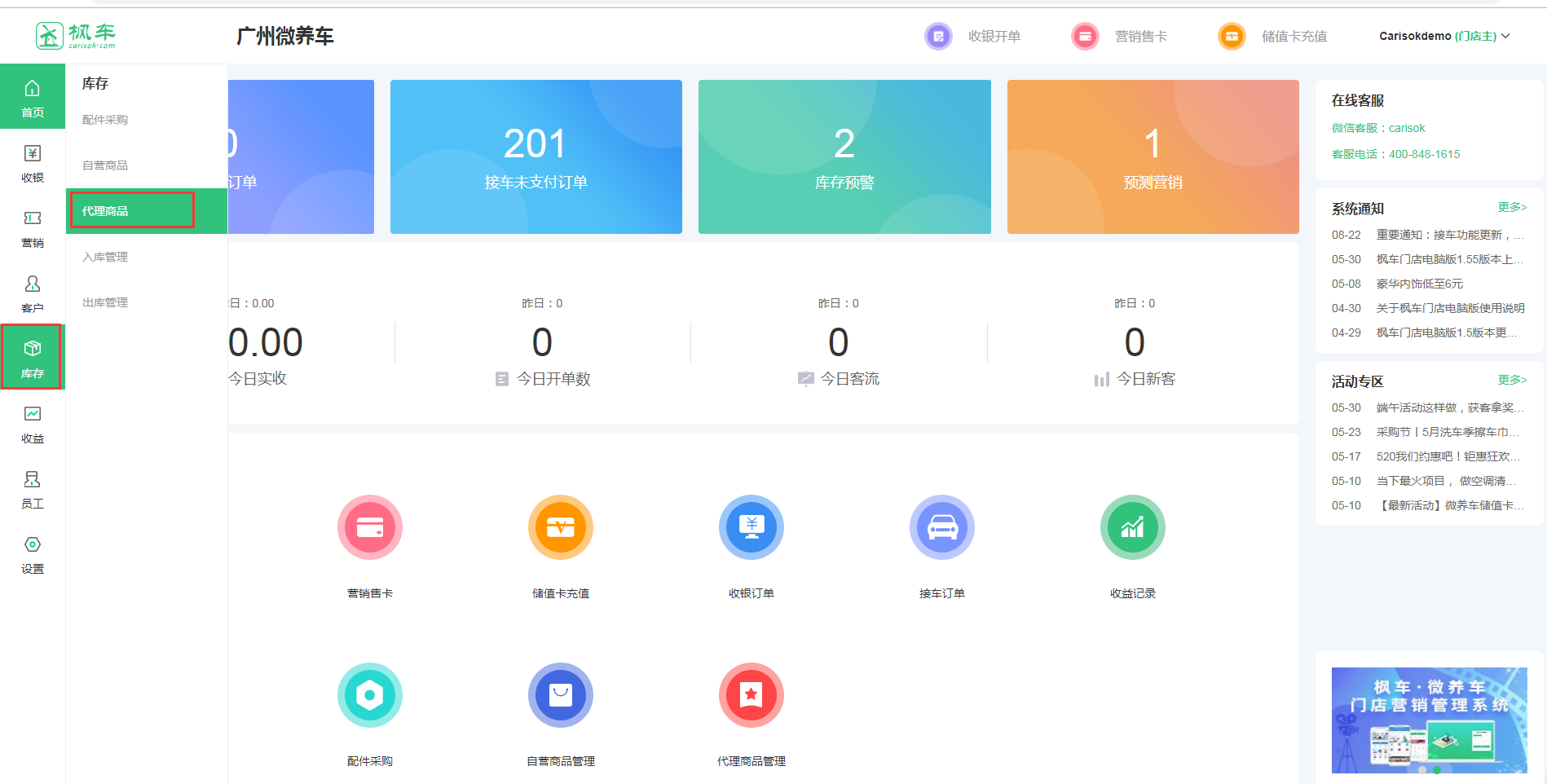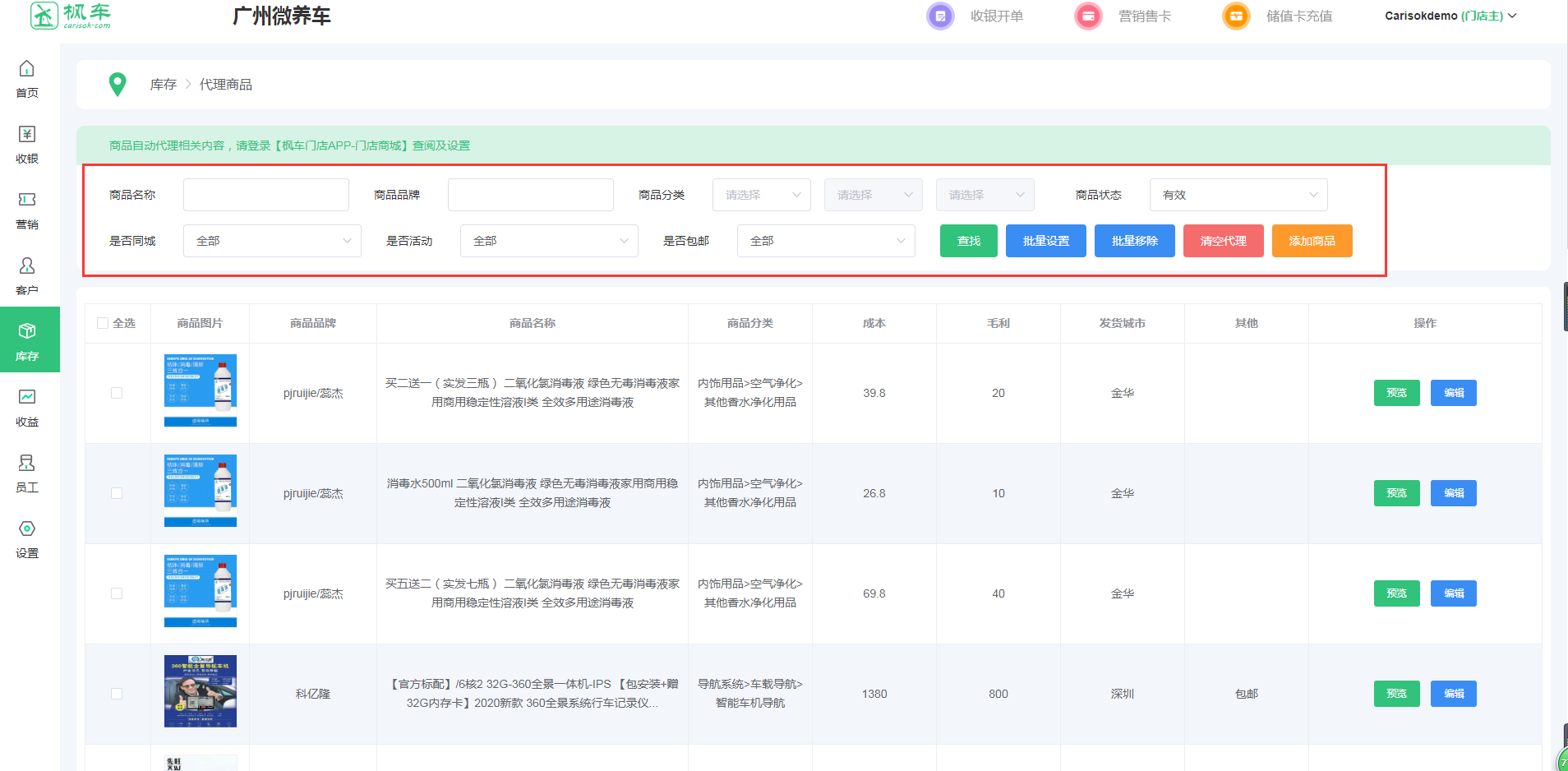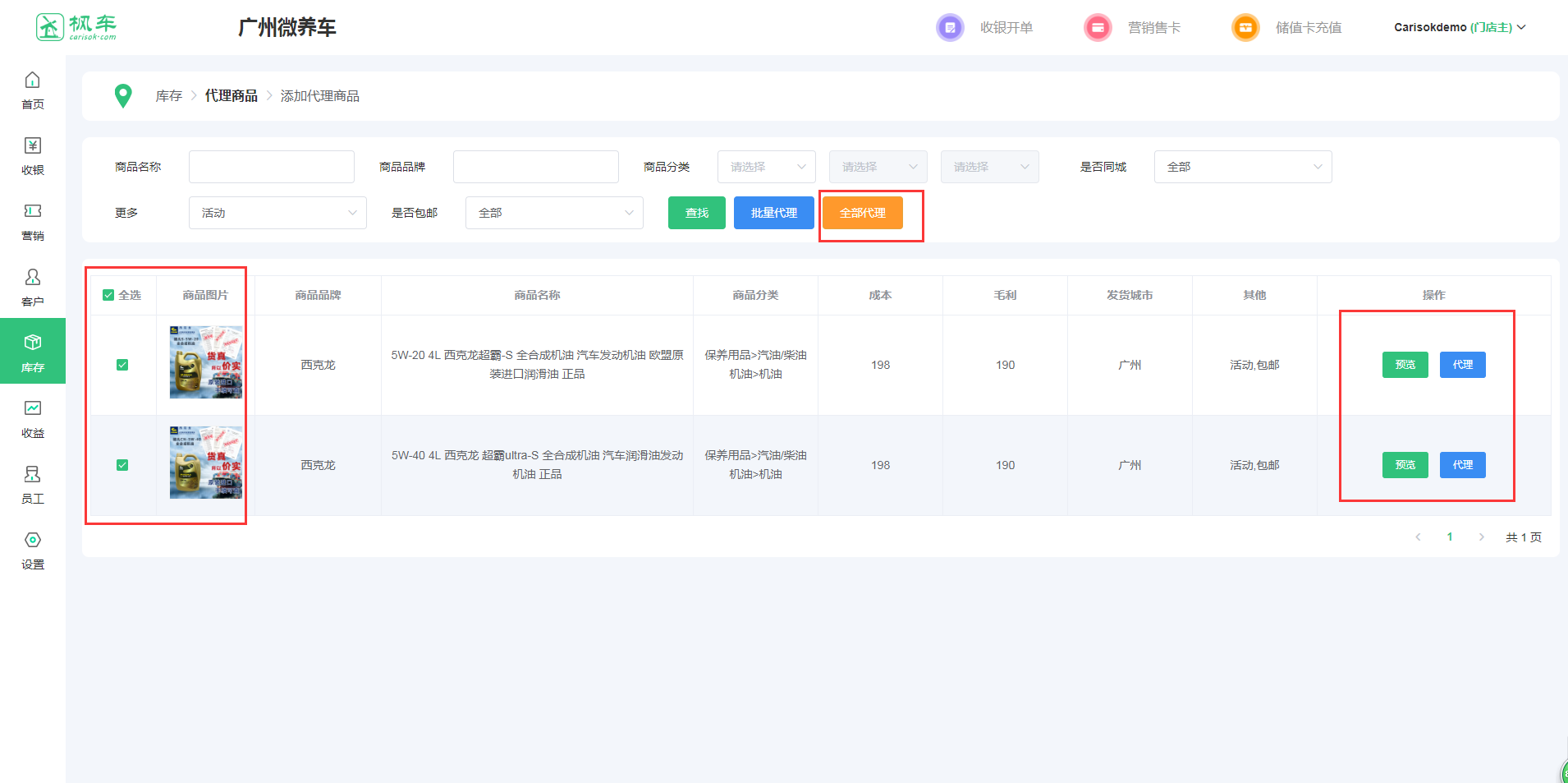 代理商品的數量是車(chē)主營(yíng)銷(xiāo)的基礎,門(mén)店代理商品的種類(lèi)越多,越容易推薦出商品。門(mén)店可在預測營(yíng)銷(xiāo)時(shí)代理商品,也可提前代理商品以便營(yíng)銷(xiāo)時(shí)有更多推薦商品
