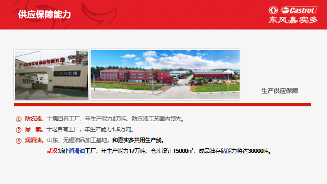 公司經(jīng)營(yíng)范圍:生產(chǎn)銷(xiāo)售發(fā)動(dòng)機系統保護液等車(chē)用化工產(chǎn)品;生產(chǎn)、調配、灌裝、銷(xiāo)售車(chē)用潤滑油;研究開(kāi)發(fā)環(huán)保石油產(chǎn)品;提供產(chǎn)品售后服務(wù)及產(chǎn)品技術(shù)服務(wù)。東風(fēng)嘉實(shí)多"秉承了兩個(gè)知名品牌的基因,發(fā)揮“嘉實(shí)多”在潤滑油領(lǐng)域的技術(shù)和品牌優(yōu)勢,為東風(fēng)汽車(chē)量身打造品質(zhì)卓越的汽車(chē)潤滑油產(chǎn)品和服務(wù)。