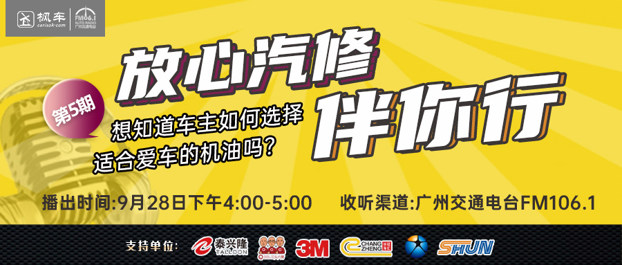 2020年8月31日開(kāi)播以來(lái),《放心汽修伴你行》電臺節目為廣大車(chē)主愛(ài)好者們帶來(lái)了一系列精彩直播。直播活動(dòng)每周一期,即每周一16:00-17:00于FM106.1廣州交通電臺準時(shí)開(kāi)播,由電臺主持人與汽修專(zhuān)家、品牌商專(zhuān)家傾情奉獻。