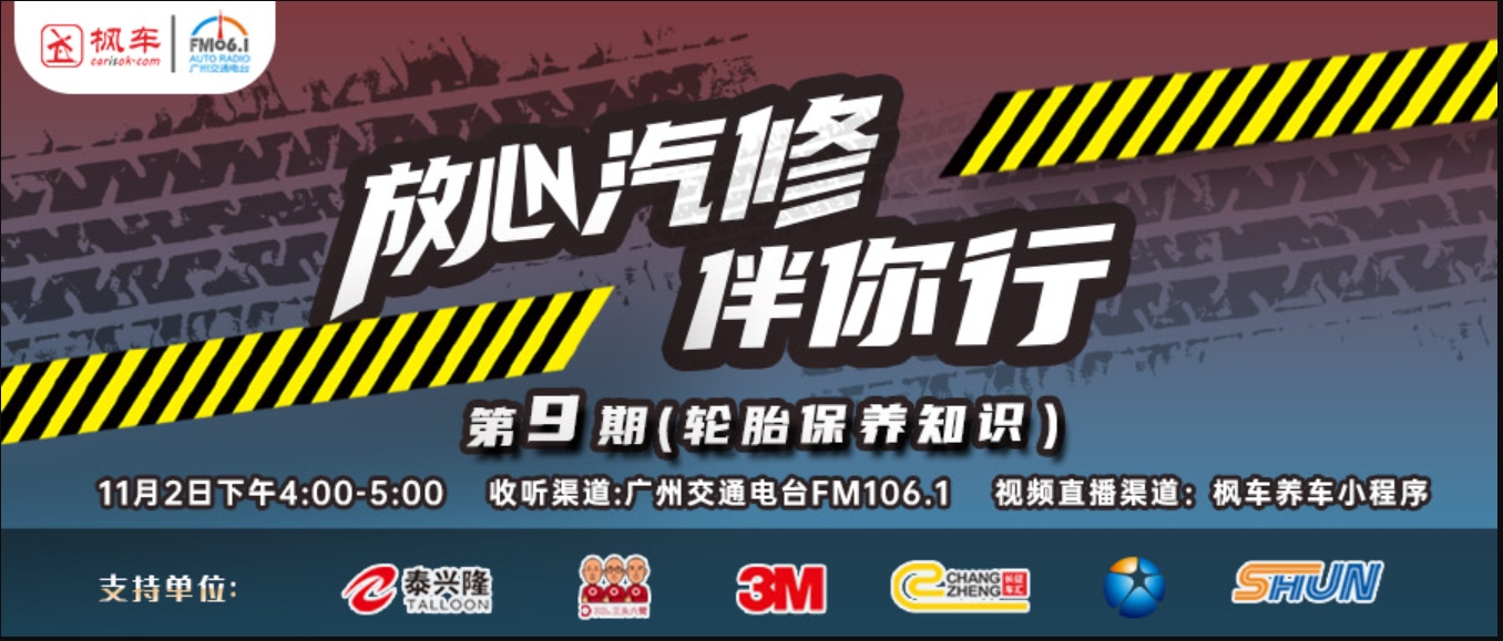 嘉賓們和主持人將通過(guò)閑聊的方式,給大家帶來(lái)"輪胎保養知識"。如果你想了解換輪胎時(shí)做平衡的作用是什么?有沒(méi)有必要在換新輪胎的時(shí)候做一下四輪定位?在日常的使用過(guò)程中,輪胎方面還有什么需要注意的呢?等問(wèn)題以及即將分享品牌產(chǎn)品和優(yōu)惠是什么,一定要準時(shí)收聽(tīng)下周一的電臺節目。