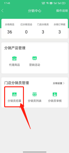 第二步:點(diǎn)擊“分銷(xiāo)員招募”